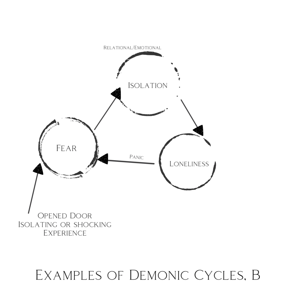 In some cases, it’s as simple as systematically breaking the legal rights associated with a given spirit that initiates the cycle. Often there is a Footsoldier/Feeder that does the job of initiating with a small sin that prompts the larger cycle. Sometimes Holy Spirit simply reveals a key to unlock breakthrough in the situation.