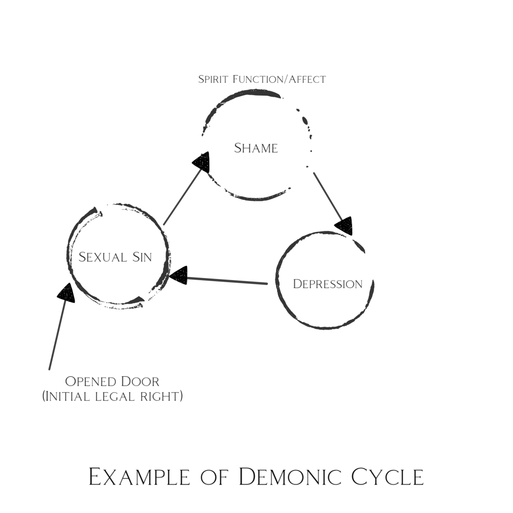 In some cases, it’s as simple as systematically breaking the legal rights associated with a given spirit that initiates the cycle. Often there is a Footsoldier/Feeder that does the job of initiating with a small sin that prompts the larger cycle. Sometimes Holy Spirit simply reveals a key to unlock breakthrough in the situation. Click here to learn more about demonic cycles.